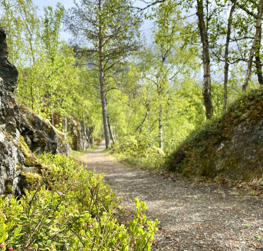 Ein enkel og fin tur på lett kupert grusveg mellom Alstad og Grønning. Passar for alle aldersgrupper. Turen går langs elva Valldøla og undervegs er det mange fine stoppunkt og fotopunkt med utsyn til elva som kastar seg nedover med fossebrøl og til fjella ikring.