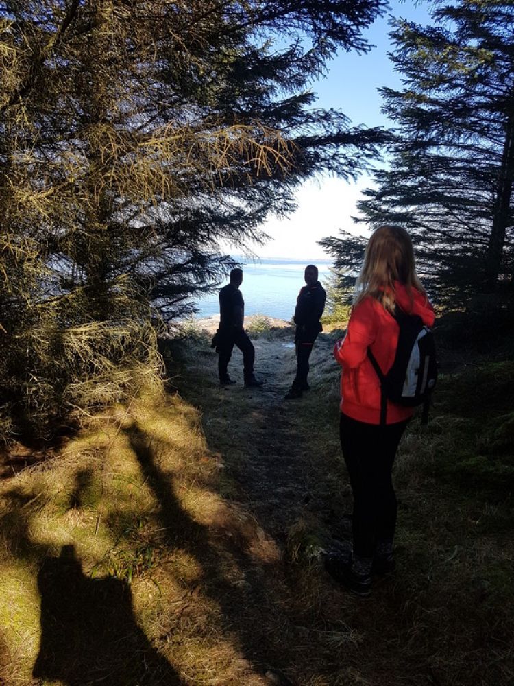 Denne turen har start ved Nordøy grendahus. Gå opp ved siden av grendahuset og langs fotballbana til ein kjem til vegen. Følg vegen oppover og ta til venstre i første kryss. Deretter følger ein vegen gjennom byggefelt og tar til høgre ved vegskille. Her starter turen opp mot fjellet og Halsane. Følg fjellvegen til ein ser eit skilt på venstre side der det står Støene. Ta av og følg råsa til ein kjem til eit stiskille. Følg stien rett frem. Her openbarar storhavet seg rett imot deg. Ein kan gå samme vei tilbake eller følge stien vidare til ein kjem til vegen i Støene. Ta til venstre her, og følg veien tilbake til Nordøy grendehus. Det kan vere dyr på beite i dette området, så pass på å late att alle grinder etter deg.