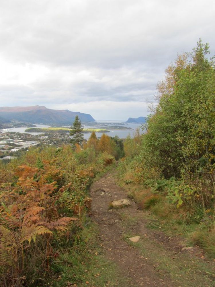 Langs stien er det mange benker med flott utsikt. Et stykke opp i bakken er det et rundt bord med benker om du vil ta en pust i bakken eller ta en piknik.