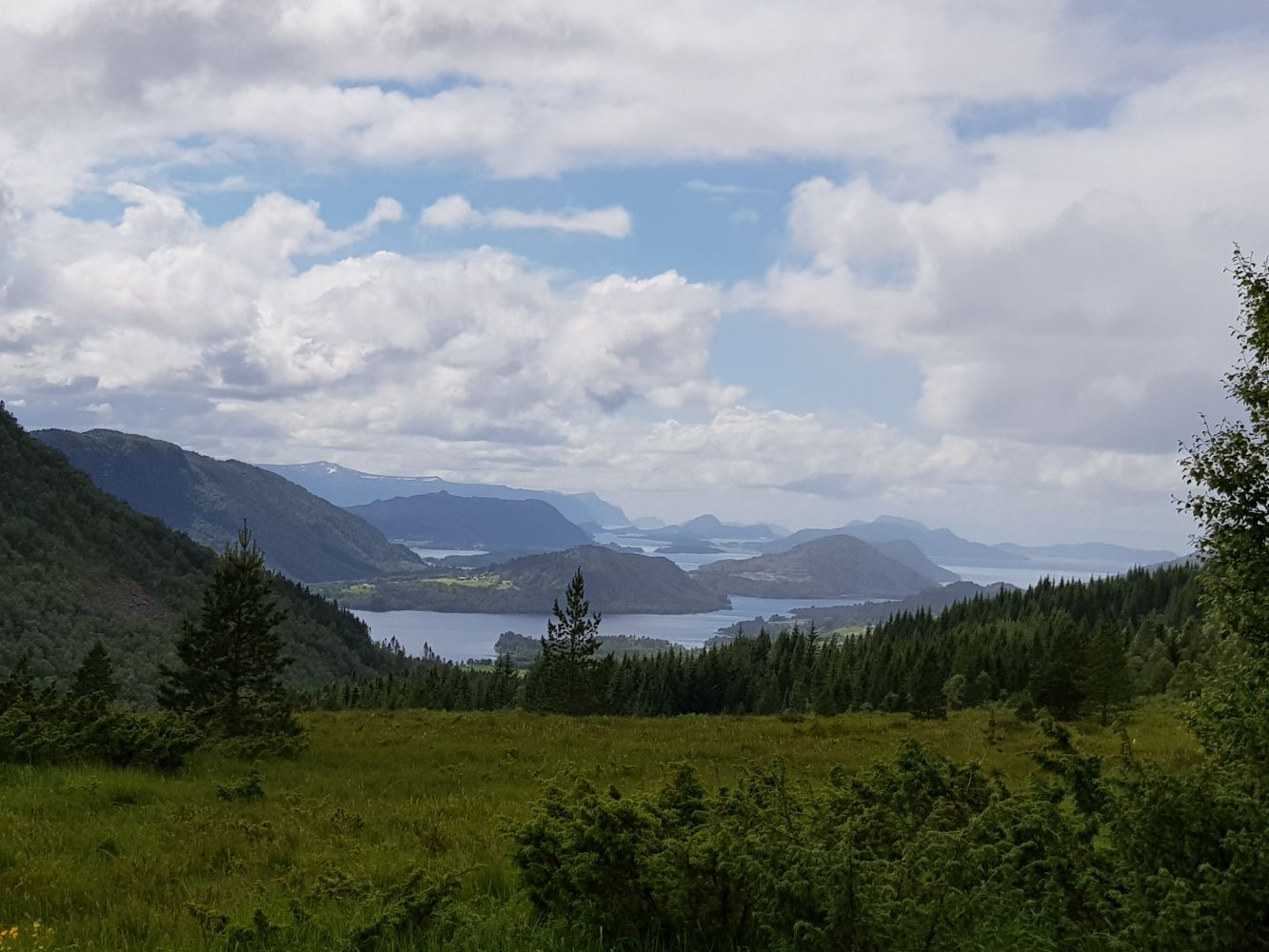 Det er flott utsyn utover Ellingsøyfjorden og terrenget rundt.