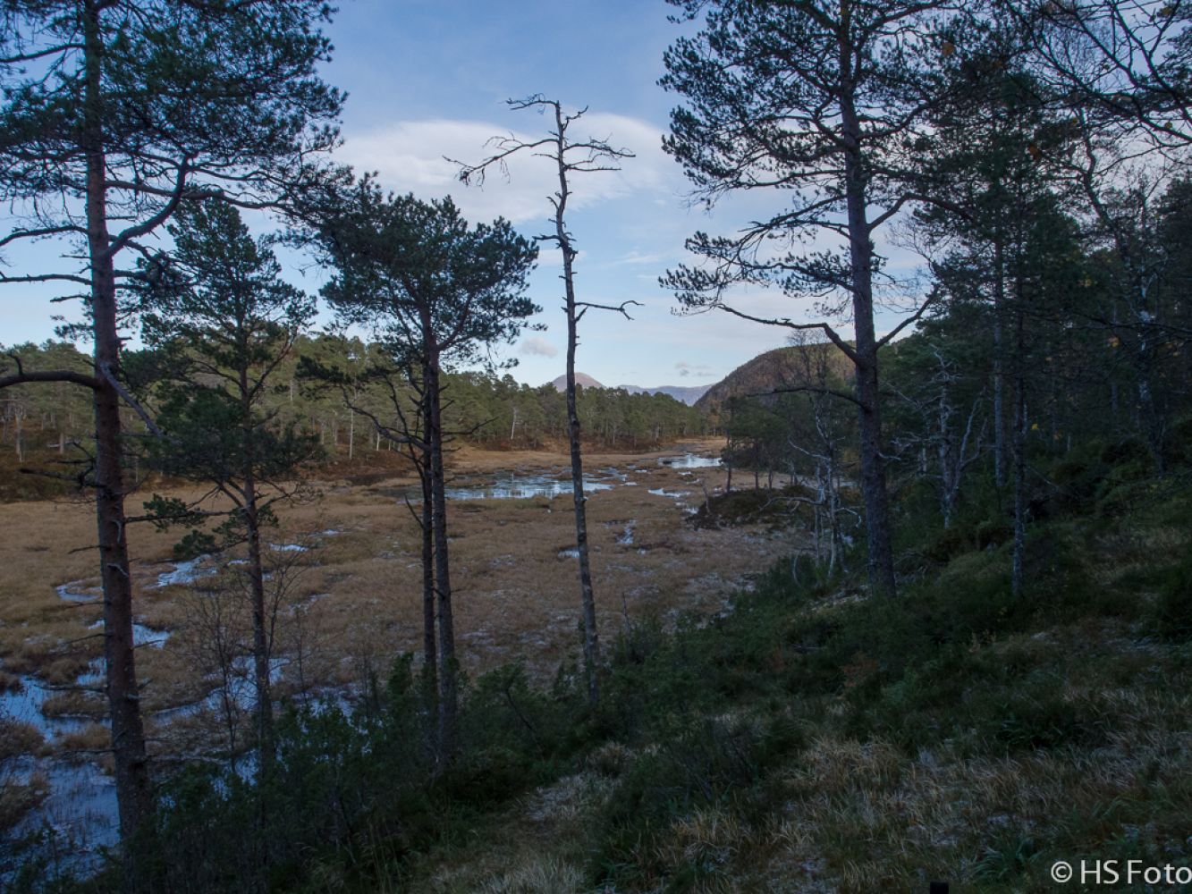 Returen gikk relativt greit. Vi fulgte merket sti til punkt 531 i GPS filen. Her ble vi usikker på om stien fortsatte ned til E39 ved Reitegjerdet, eller om den gikk mot Holsfjellet. Vi valgte derfor å gå nordover til stien vi gikk på tidligere på dagen. Storsannsynlighet for at stien kan fortsette vestover mot punktene 532 og 533 i GPS filen.Ved punkt 530 i GPS filen så var trærne merket nordover og ned mot myra igjen. Det var der nede vi gikk tidligere på dagen på vei til Rødlandstua.