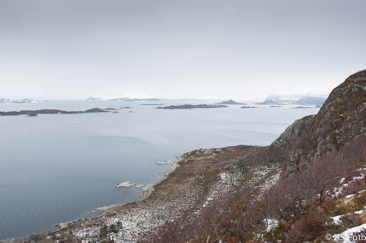 Sporloggen tar deg med ut til Fjellsenden og ei skytestilling som ligger rett nedenfor toppen. Fra denne posisjonen ser du 'hele' veiene fra Kverve og ut til Gildreneset. Veien ligger nedenfor stupet du står på.