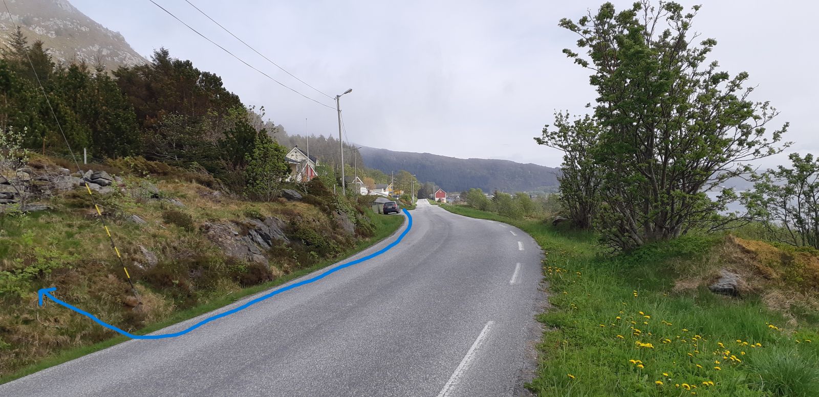 Følg Leinevegen 70-80 m vidare til svingen ved Volsundfjellet. Gå opp til eit steingjerde på høgre side av vegen og kryss steingjerdet. Då kjem du rett inn på stien som du skal følge heile vegen til topps. Stein er tydeleg og det er jamnt stigning heile vegen. Flott utsikt heilt til topps!