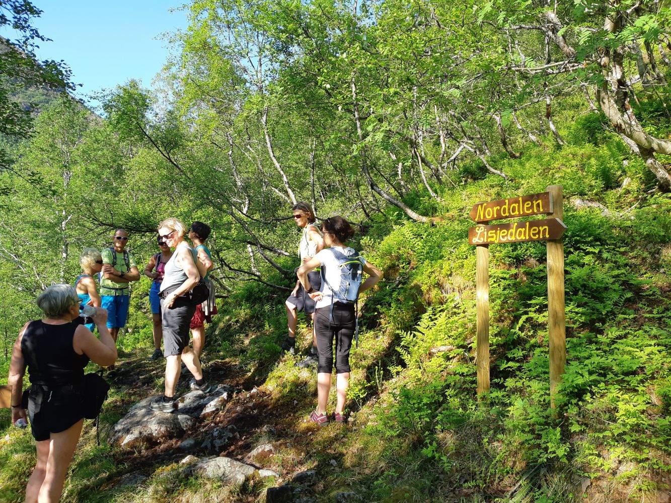 No skal du gå bratt opp gjennom skogen til du møter stien frå Lisjedalen. Ta til venstre, skilta Nordalen. Stien er tydeleg og lett å finne. Følg denne heilt til Norddalssætra. Frå Norddalssætra kan ein nå fleire toppar, m.a. kan ein gå vidare til Storetinden på 1408 moh.