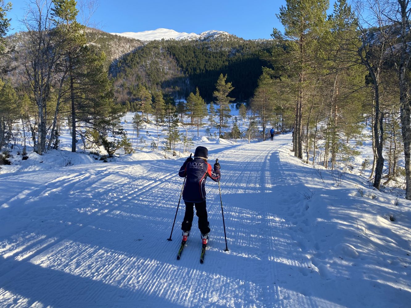 Fin tur i lett terreng innover til Skålsetra. Løypa går på sommerbilvegen. Kassen henger til venstre for løypa inne på Skålsetra.
