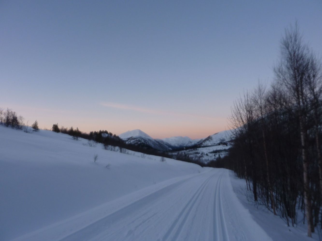 En virkelig fin skitur i enkelt terreng. Du går gjennom skog, over myrer med storslått utsikt mot en natur som tar pusten fra deg. Timer du turen kan du stoppen på Skaret i Fræna kommune å spise middag eller ta en kakebit. Eller hvorfor ikke ta en tur innom Lysgården eller Klokkargården. For mer info se http://www.skarstua.no.