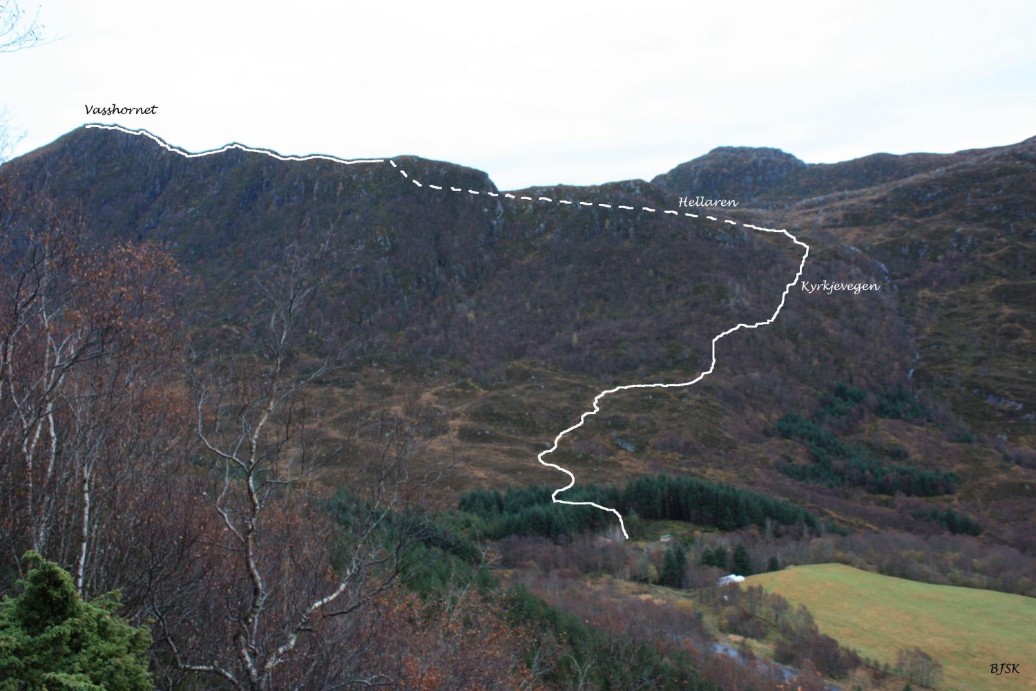 Råsa byrjar på austsida av grushola på Almestad, går så gjennom skogen, over elva og over myrane og opp Kyrkjevegen. Råsa går over nokre bratte berg øvst i Kyrkjevegen, når du har passert dei tek du til venstre skilta mot Vasshornet. Råsa går vidare over nokre myrar, går så bratt oppå ryggen og fylgjer den heilt opp til toppen. Der er litt bratt på enkelte parti oppetter ryggen.